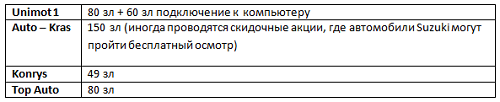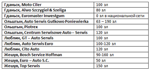 Например, в Белостоке мы попросили прокомментировать некоторые из самых популярных компаний: Top Auto, Auto – Kras, Unimot 1 и Konrys. Цены представлены в таблице ниже.
