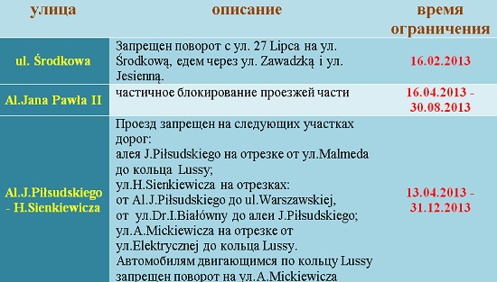 Каждый, кто приезжает в Белосток за покупками, сталкивается с такой ситуацией. На привычном пути следования автомобиля появляется знак запрещающий проезд. Все потому что кто-то решил начать ремонт дороги. Останавливаемся, тыкаем пальцем в навигатор и еще 15 мин пытаемся выехать на нужную дорогу. Можно избежать ненужных переживаний, ознакомившись с таблицей ремонта дорог.