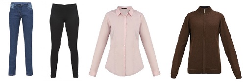Ассортимент магазина включает в себя блузки, куртки, рубашки, футболки, пальто, брюки, свитера и многое другое.