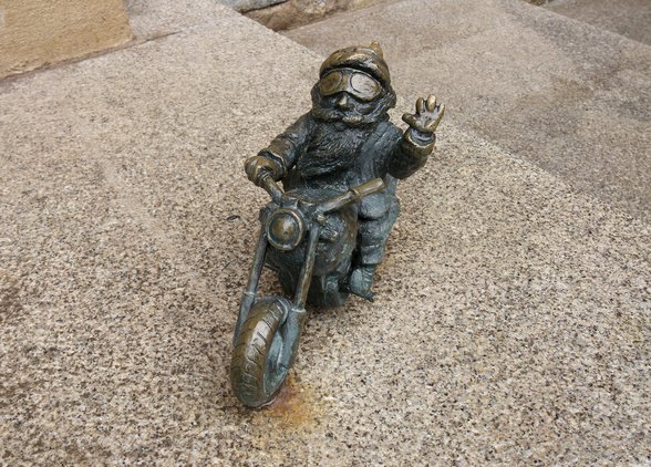 Так, например, гном у здания банка снимает деньги в банкомате, а под стоматологическим кабинетом – целых два гнома, один из которых вырывает другомузуб. Еще один маленький житель разместился на каменном обелиске возле отеля Monopol. Этот необыкновенный гном пришел во Вроцлав из Зеленого леса, он напоминает людям о том, как важна окружающая среда, и как нужно о ней заботиться. Есть во Вроцлаве и гном-трубочист, прикосновение к которому гарантирует исполнение желания.