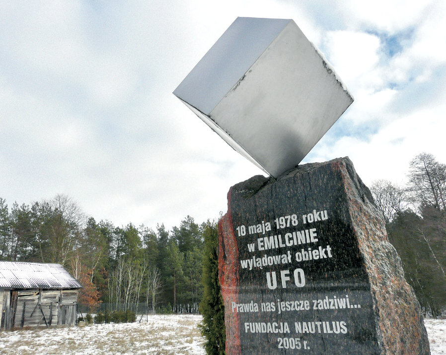 Памятник НЛО расположен в городе Эмильцин. Он был установлен, чтобы почтить память событий мая 1978 года, когда житель деревни Ян Вольский встретил странных существ и их летающую тарелку, возвращавшуюся домой через лес. Внеземные существа, по словам очевидца, запрыгнули на его повозку и приказали отвезти их на поле, где стояла летающая тарелка. Они пригласили фермера на борт и провели на нем испытания. Вольский описал, что незнакомцы были очень добры к нему и даже предлагали ему еду.