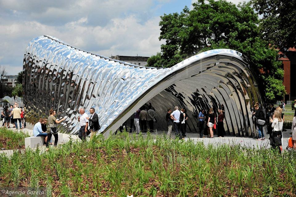 Скульптура на острове Далиова во Вроцлаве. Этот странный памятник постоянно вызывает бурные обсуждения местных жителей. Одни говорят, что он совершенно не имеет смысла, другие – что украшает город. Тем не менее, серебряная инсталляция, напоминающая изогнутый туннель, является излюбленным местом туристов и фотографов.