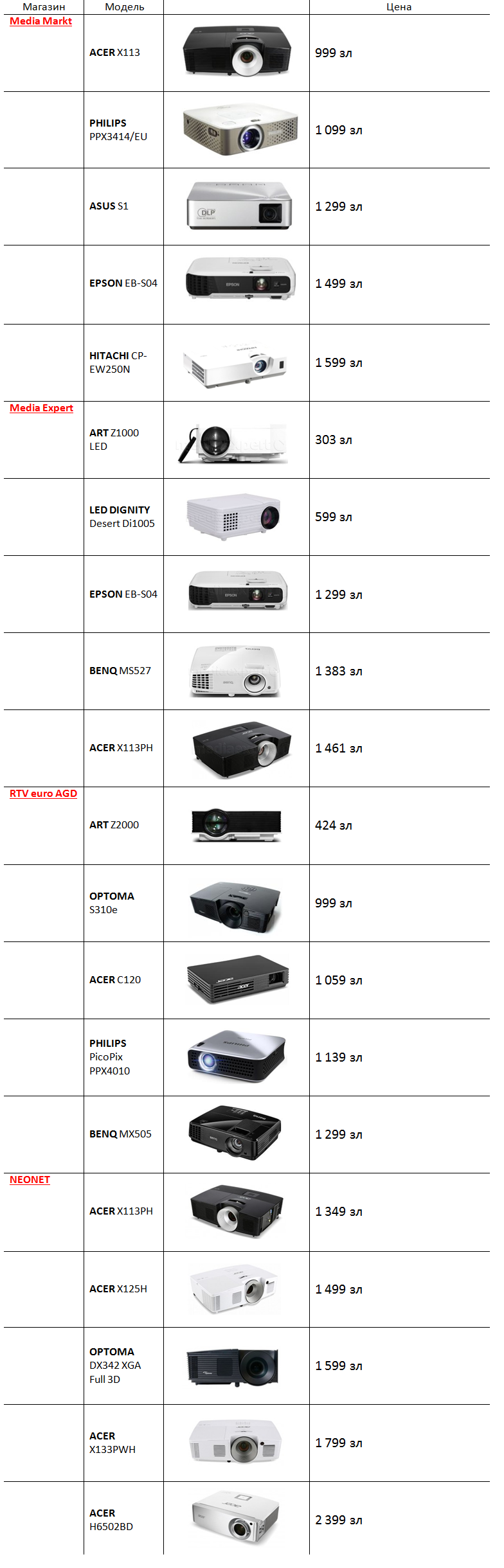 А сегодня предлагаем краткий обзор цен на проекторы в самых популярных магазинах бытовой техники Белостока: